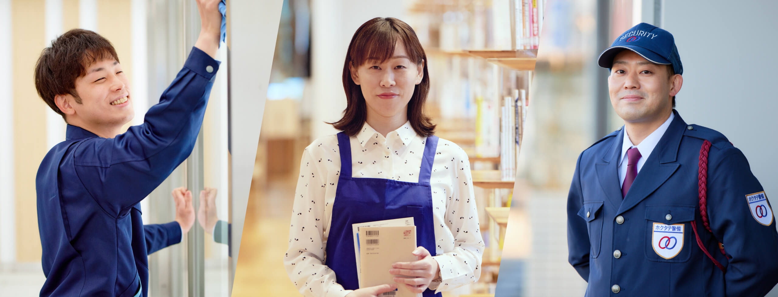 ホクタテでは、施設管理、警備・清掃などのビルメンテナンス業務から、通信・システム業務、旅行・商事関連業務などのサービス業務に至るまで、幅広い業務を請け負っています。このような多彩な業務にトータルに挑戦する気概のある人材を求めています。
